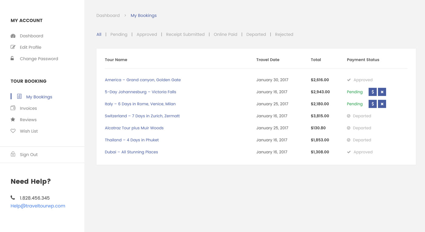 After creating an account, you'll be able to track your payment status, track the confirmation and you can also rate the tour after you finished the tour.