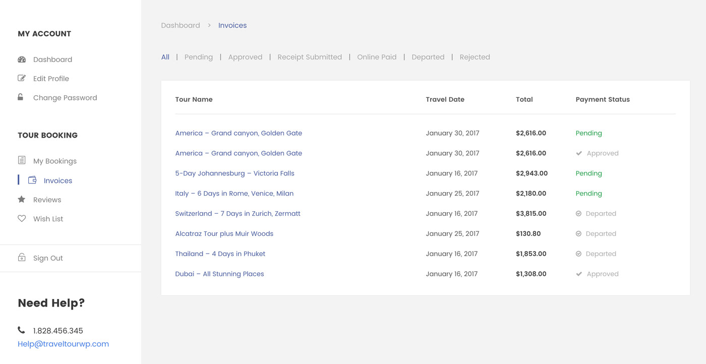 After creating an account, you'll be able to track your payment status, track the confirmation and you can also rate the tour after you finished the tour.